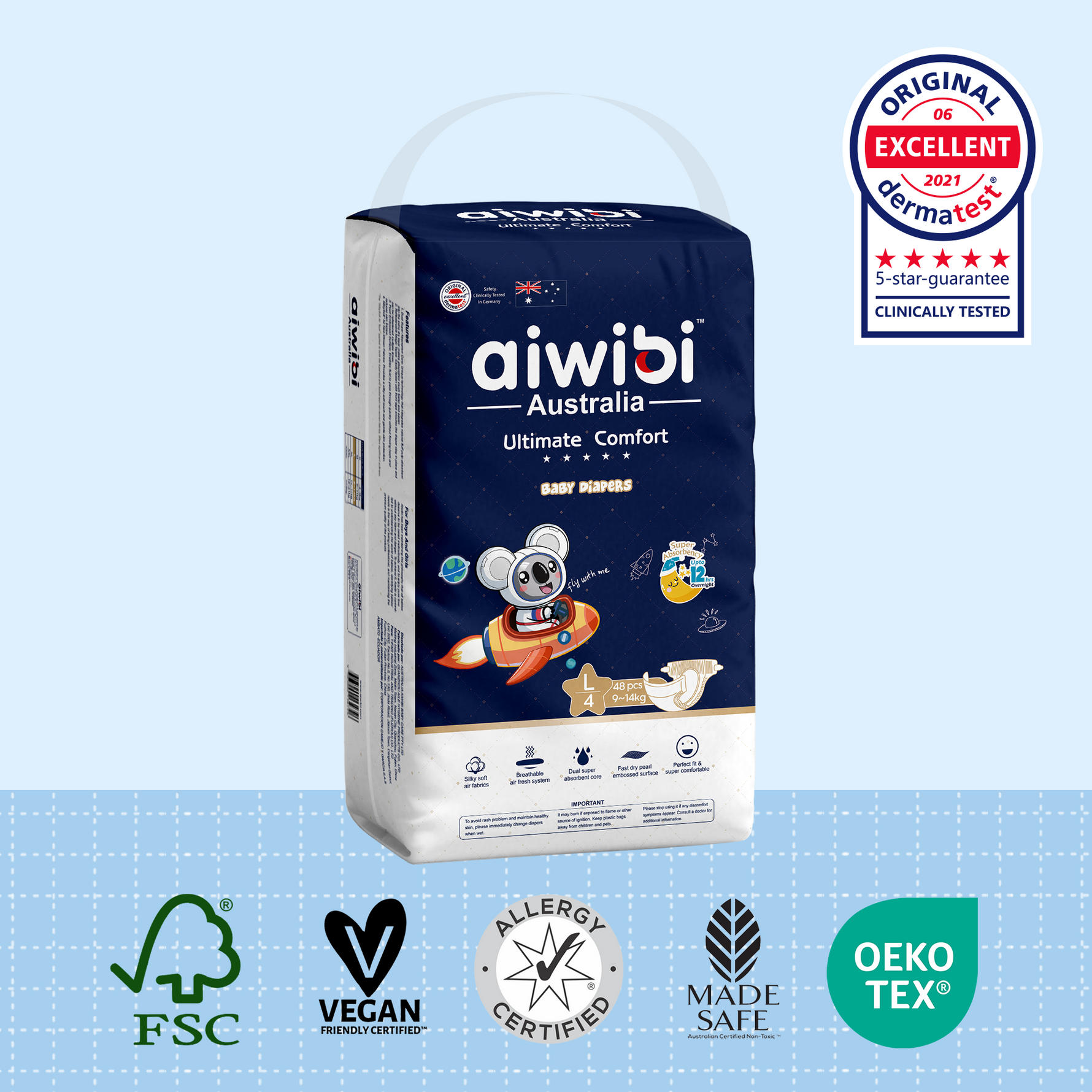 - Los pañales Aiwibi están certificados por el Instituto Dermatológico Alemán Dermatest, lo que garantiza su suavidad con la piel de tu bebé. No añadimos fragancias, extractos, colorantes ni otros productos químicos agresivos, lo que los hace inodoros e hipoalergénicos.
