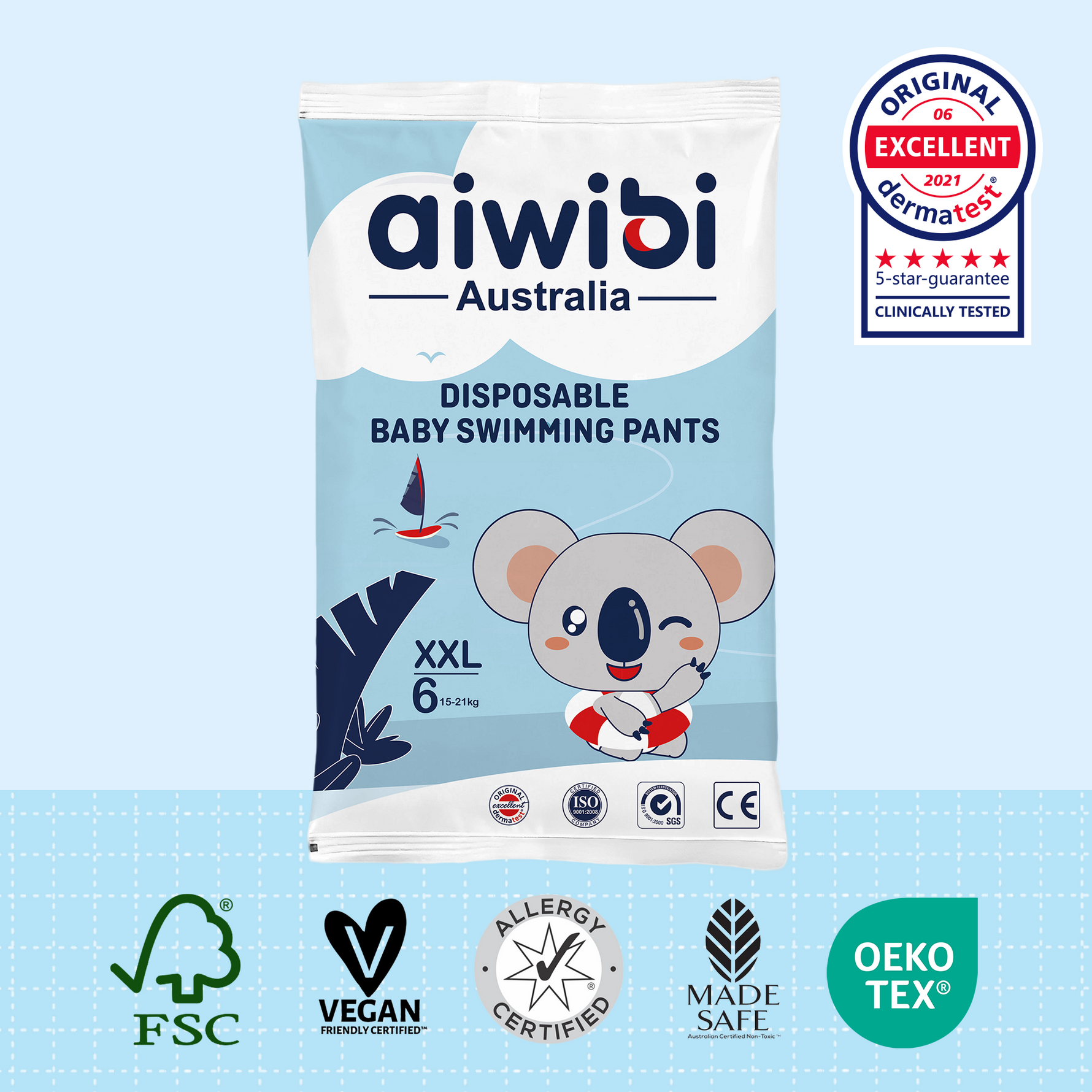 Los pantalones de natación para bebés Aiwibi están hechos con una tela suave no tejida y cuentan con una película impermeable de PE, lo que garantiza comodidad y protección durante el juego en el agua.