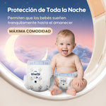 Bloquea el líquido instantáneamente en 2 segundos con Núcleo Absorbente Dual™ único, que absorbe rápidamente la humedad y retiene hasta 2000 ml. Brinda una protección durante toda la noche y comodidad duradera, manteniendo a tu bebé seco y sin fugas