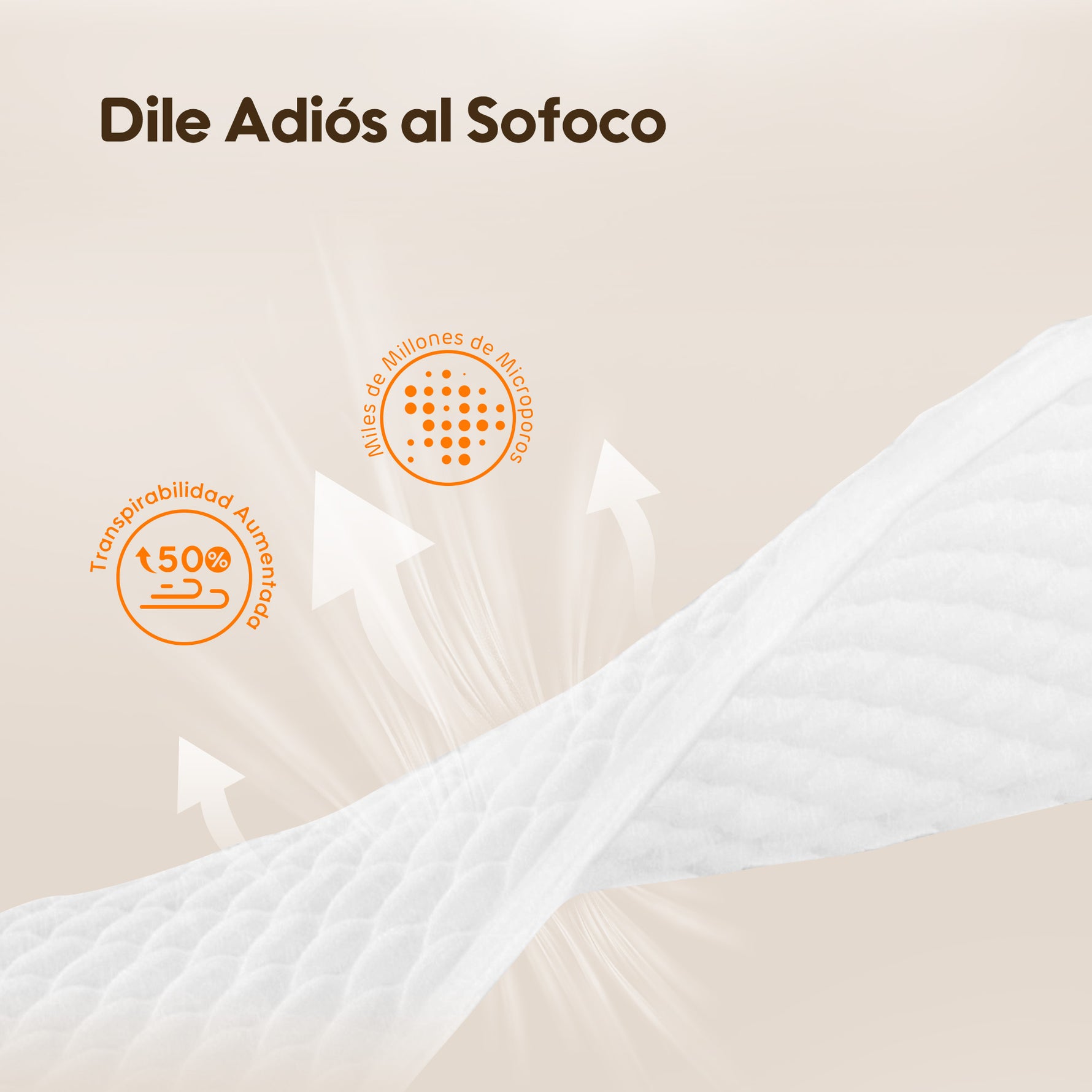 Exclusiva Película MicroAiry™, diseñada con miles de millones de microporos ultra finos. Esta película de PE transpirable permite que el aire fluya libremente y evita que el agua pase, aumentando la transpirabilidad en un 50 %.