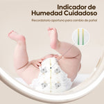La capa exterior del pañal está hecha de tela no tejida transpirable. Retiene la humedad y permite que el calor y la humedad escapen. La humedad que percibes probablemente se deba a la liberación de aire caliente, que también podría traer un ligero olor a pipí o popó de tu bebé. Este diseño ayuda a mantener la zona del culito de tu bebé seca y cómoda, reduciendo la sensación de sofoco.